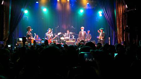 演唱會的開場就是MATZKA,我被一大群大陸人包圍,用各地的口音互相問著:他們是誰阿?有沒有人知道他們是誰阿?也不能怪他們,在台灣都很少人知道這個超屌的樂團了。只是大陸女生的口音及用語.聽了蛋疼。但MATZKA真的很屌,在沒有人認識他們的情況下,接近一個小時的表演裡完全沒冷場!而且笑聲不斷,大家都被他們原住民式的幽默逗的笑呵呵的。比如說:我們上首歌I love you no ha ha,就是說我愛妳不開玩笑,我不知道開玩笑的英文所以直接叫haha,請大家翻譯給旁邊的法國人聽。這笑話似乎很對大陸人胃口,他們笑的好開心。嚴J的表演我就不想再提了,我看了都想哭。五月天真的全員到齊上台後,全場的人就暴動了一個多小時...與他們的任一場演唱相同。我自己覺的他們這次有很拼的感覺,可能再一次的遇到他們不熟悉的聽眾,在不熟的國度,又在小小的場地上演出,讓他們回憶起年輕時的熱血吧!然後五月天是好幾年沒在這麼小的場地演出了,所以我覺得有幸在花都巴黎近距離地聽他們的演唱會也是三生有幸了。